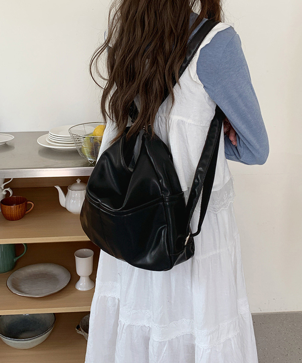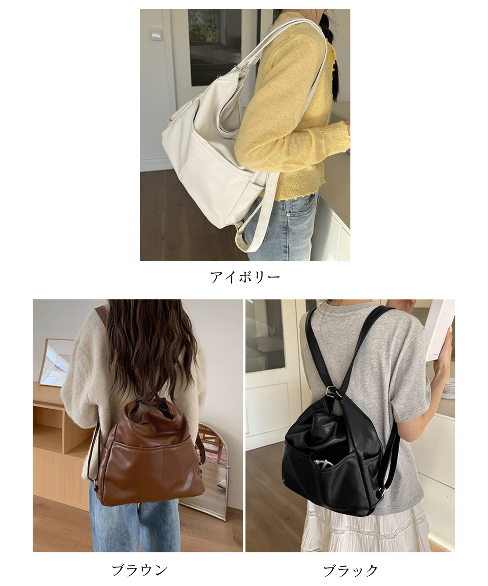 シーンに合わせて使い分けできる三通り仕様のレザーリュック。