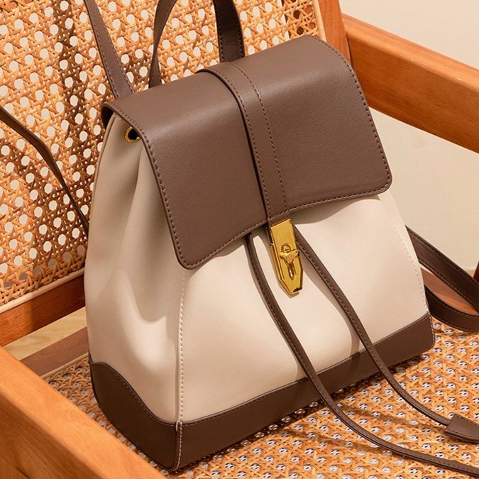 中央の金具留めがアクセントになった洗練されたデザインで、大人っぽい雰囲気を演出します。