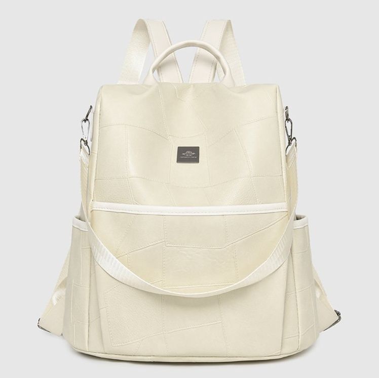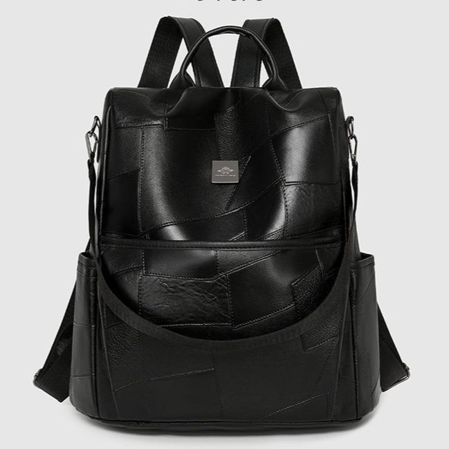 上質な合成皮革を使用したレザーリュックで、通学に最適な多機能デザインが魅力です。