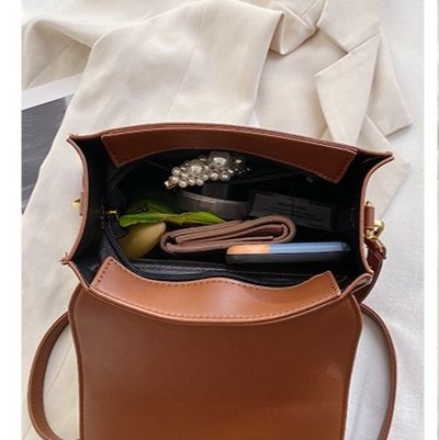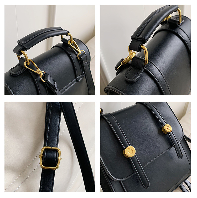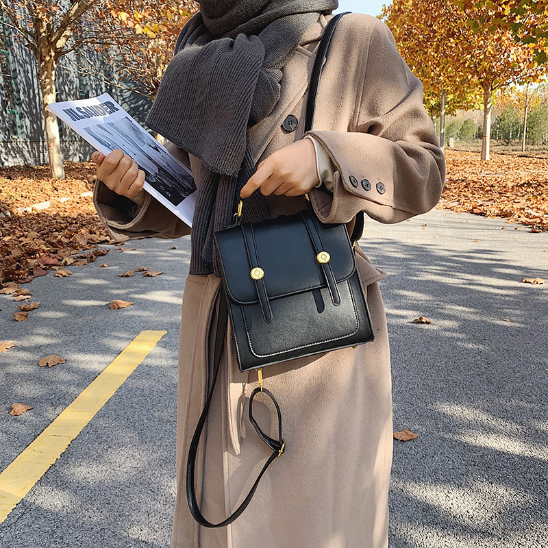 前面の二本ベルトと丸い金具がクラシカルな雰囲気を演出し、上品な印象を与えます。